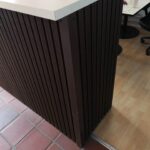 Vores komposit består af 60% træ, 30% genanvendt plast og 10% bindemiddel/farve.