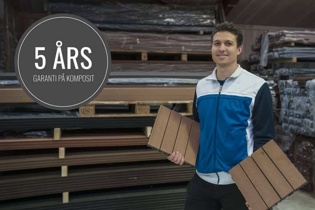 Det produktprogram, som tilbydes hos Kompositterrasse.dk er kvalitetsmæssigt af meget høj standard. Derfor kan vi også tilbyde 5 ÅRS GARANTI på alle vores produkter.