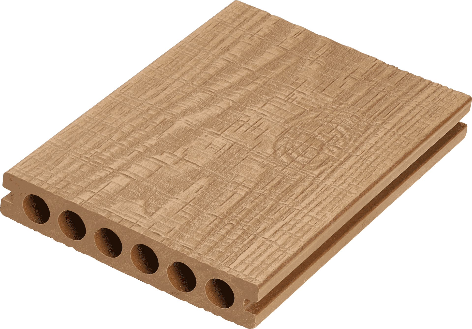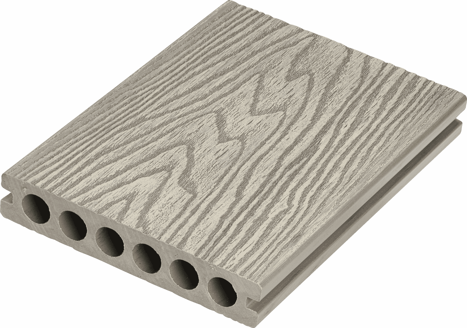 Vores komposit består af 60% træ, 30% genanvendt plast og 10% bindemiddel/farve.