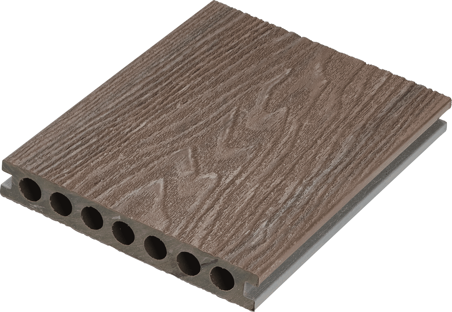 Udover komposit har den en gummibelægning, der giver en rigtig blød og lækker overflade. Dette giver en mere realistisk og blød fornemmelse at gå på, samt gør den ekstra skridsikker. 3D strukturen og den dybe træoverflade giver et flot look, hvor man virkelig får følelsen af rigtig træ, og er mere vedligeholdelsesfri.