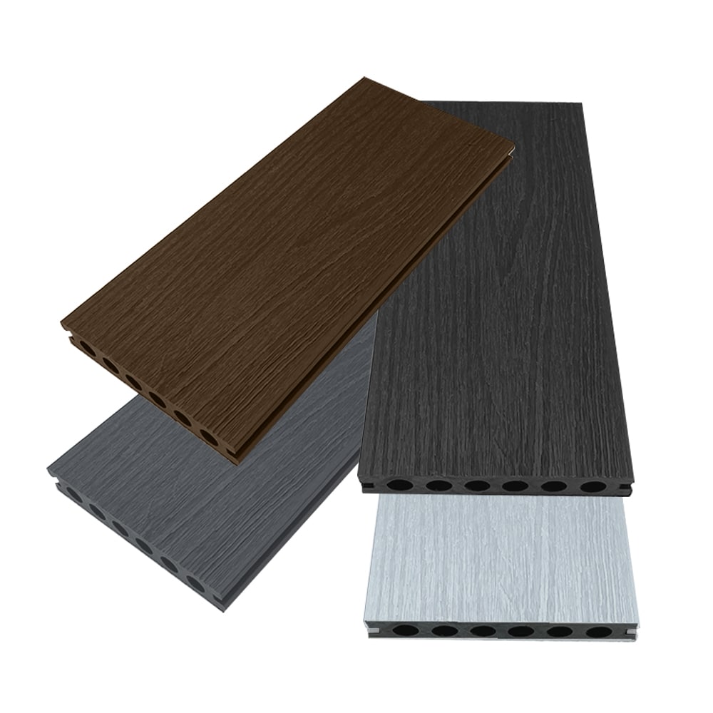 Vores model Canada er vores Premium variant. Canada Premium er mere vedligeholdelsesfri end normal komposit, da den er belagt med et 1-2 mm PE plastlag der beskytter produktet. Samtidigt har den 3D træstruktur, der giver et flot look, hvor man virkelig får fornemmelsen af rigtigt træ.
