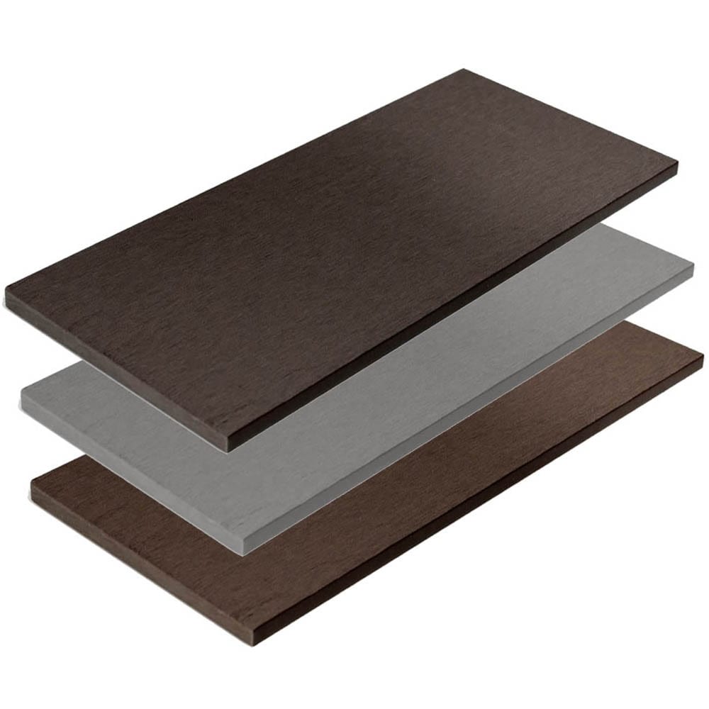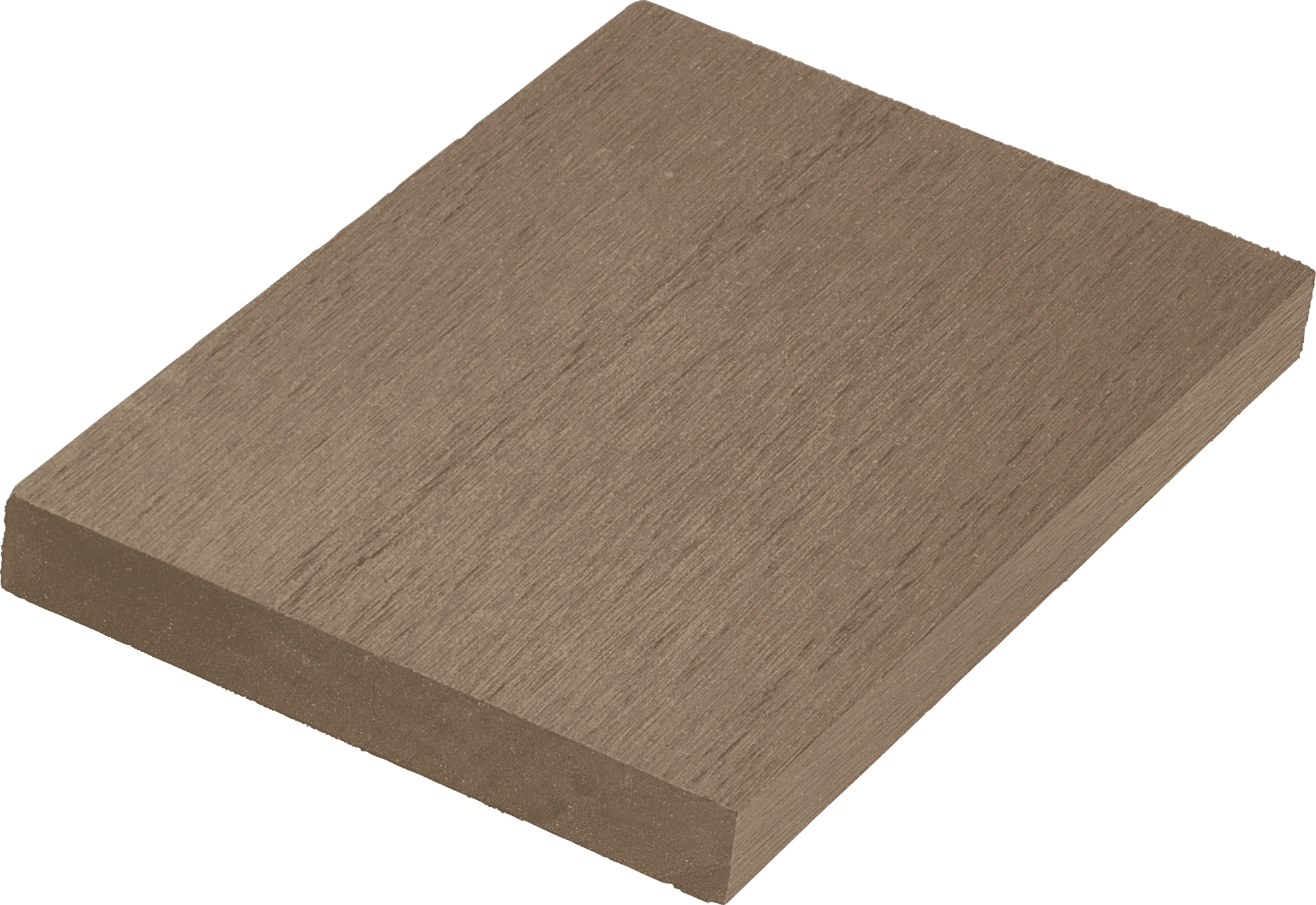 Vores komposit består af 60% træ, 30% genanvendt plast og 10% bindemiddel/farve.