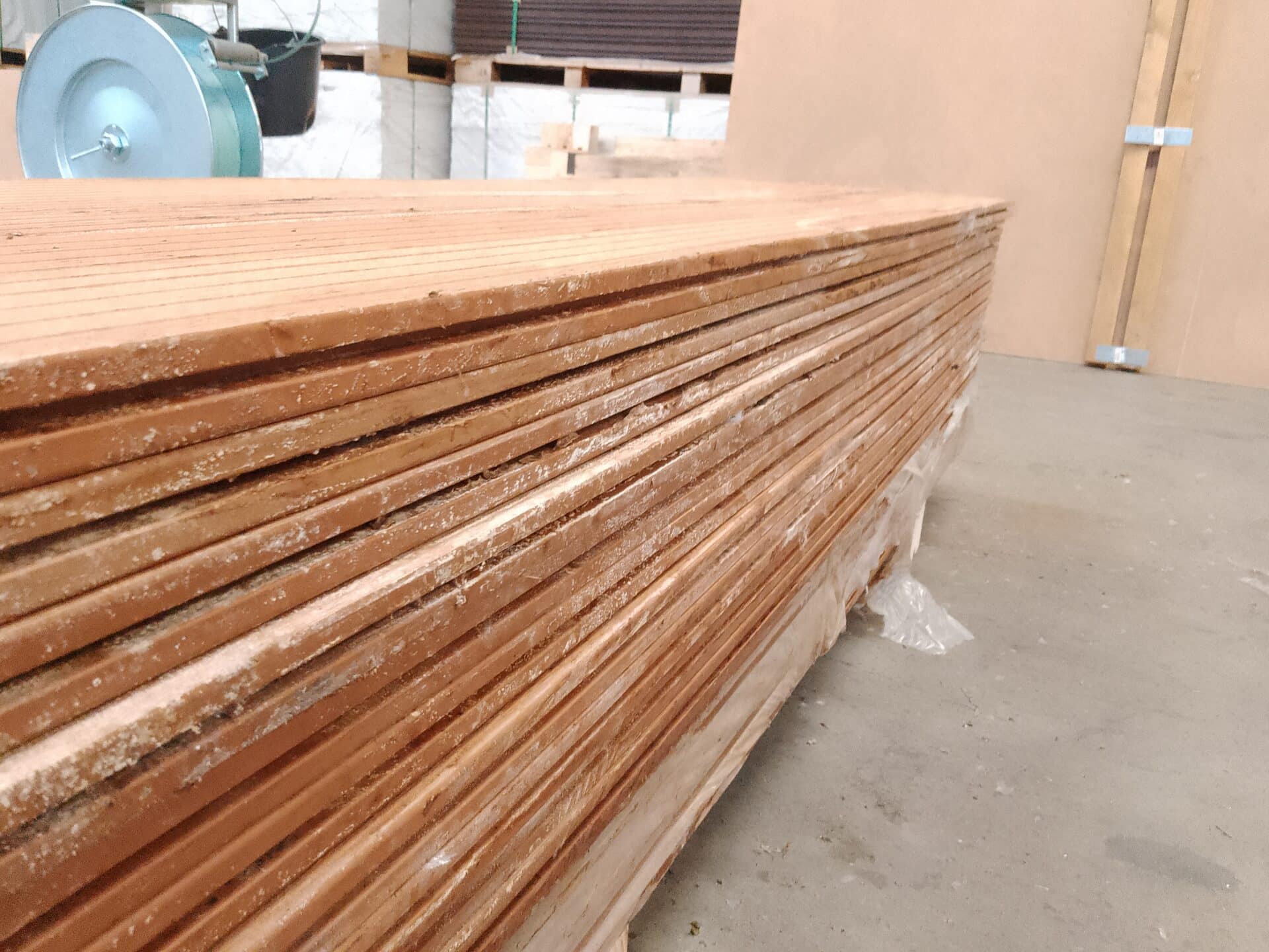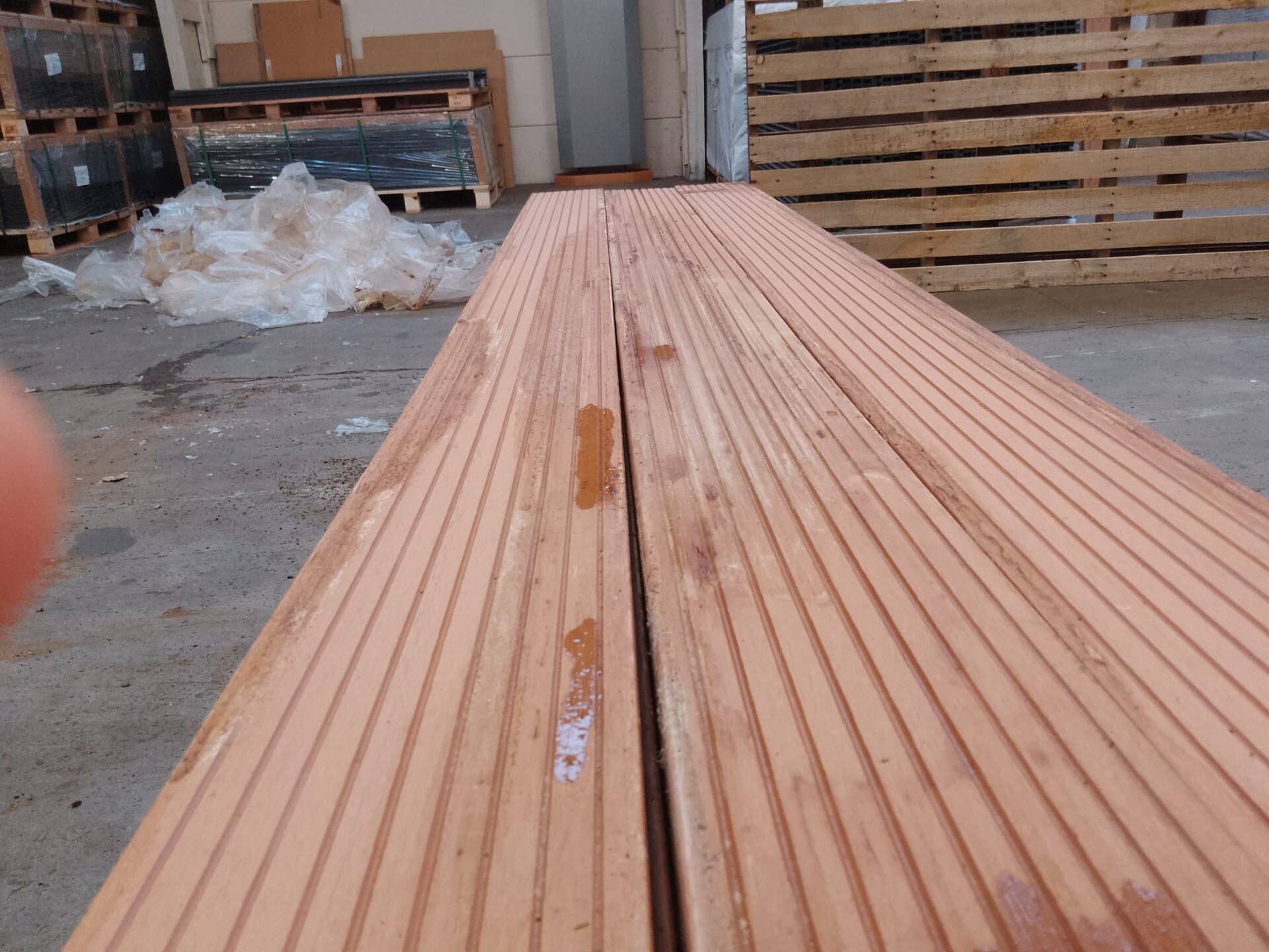 42 stk. á 2200 mm. (nogle af brædderne afviger en smule i farven, se billeder for ref.) Restparti indeholder ikke monteringsclips.