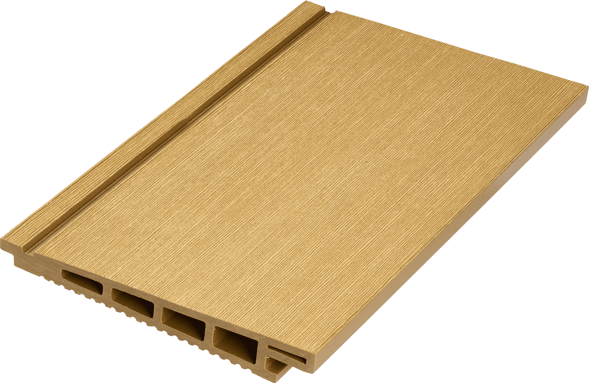 Vores komposit består af 60% træ, 30% genanvendt plast og 10% bindemiddel/farve.