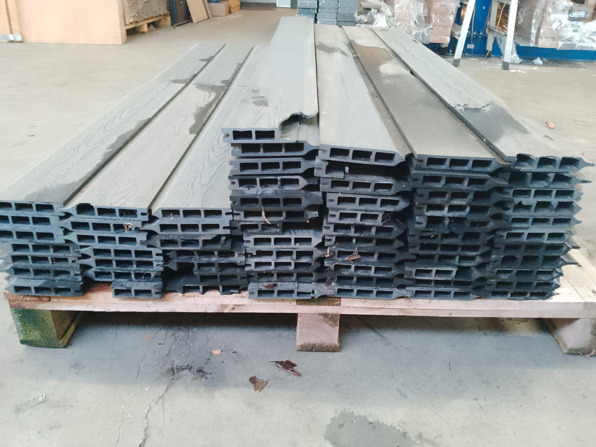 Vores komposit består af 60% træ, 30% genanvendt plast og 10% bindemiddel/farve.