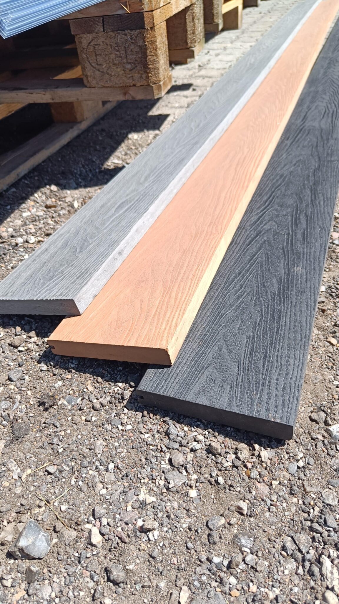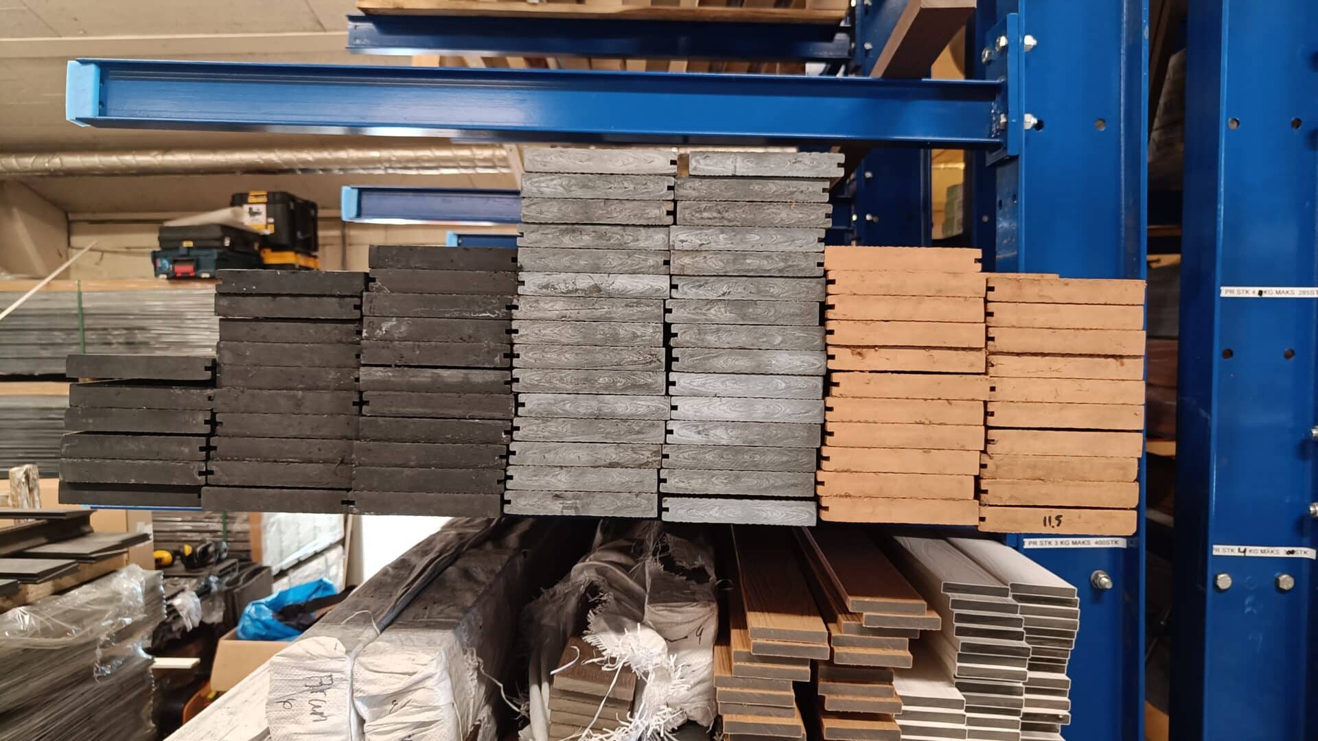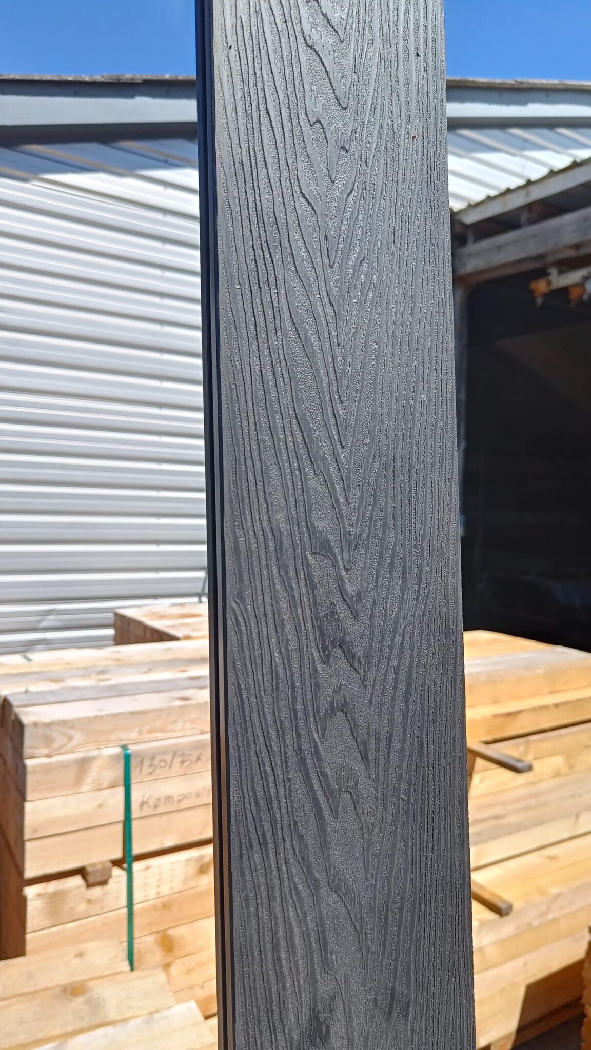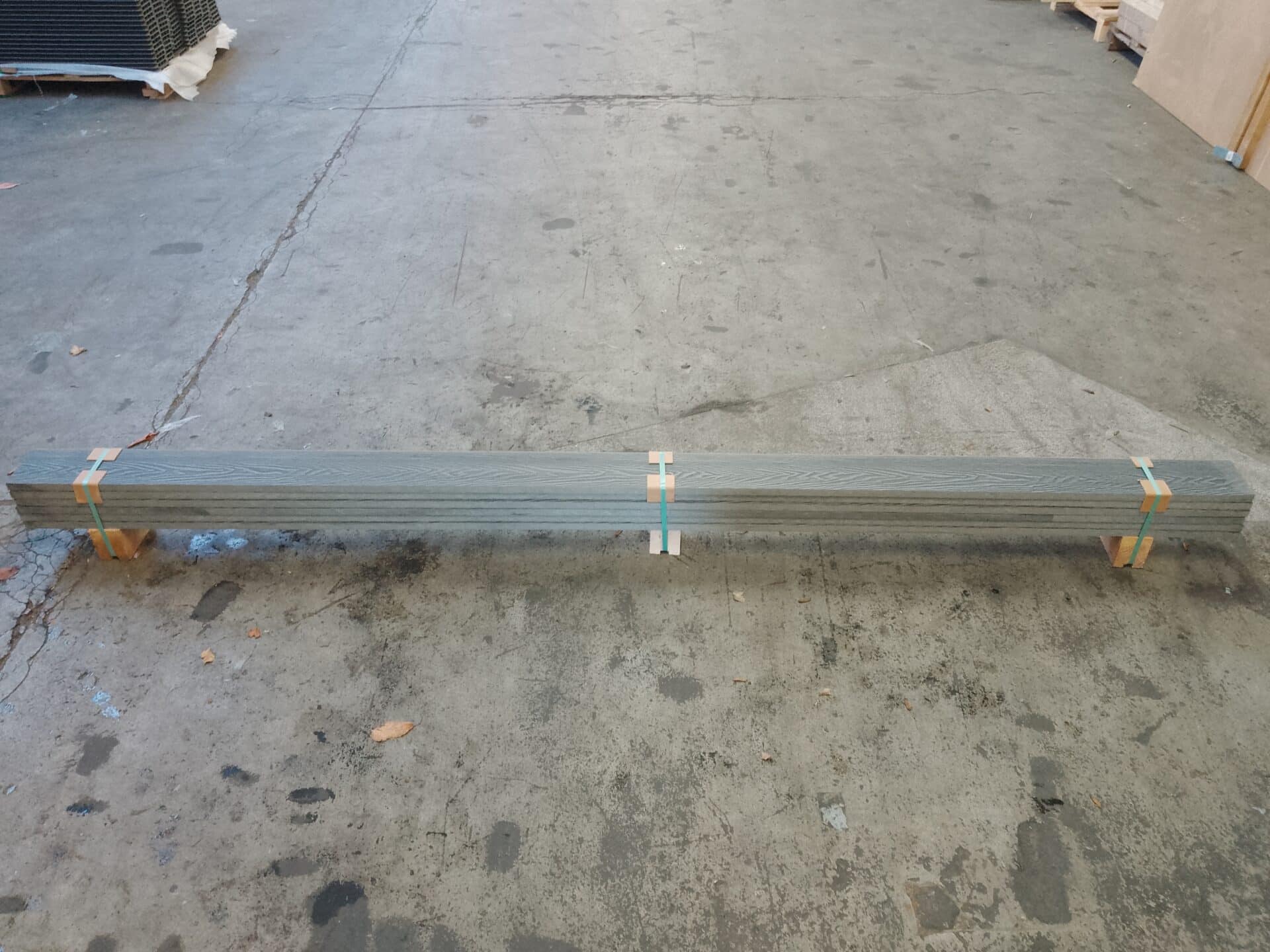 Vores komposit består af 60% træ, 30% genanvendt plast og 10% bindemiddel/farve.