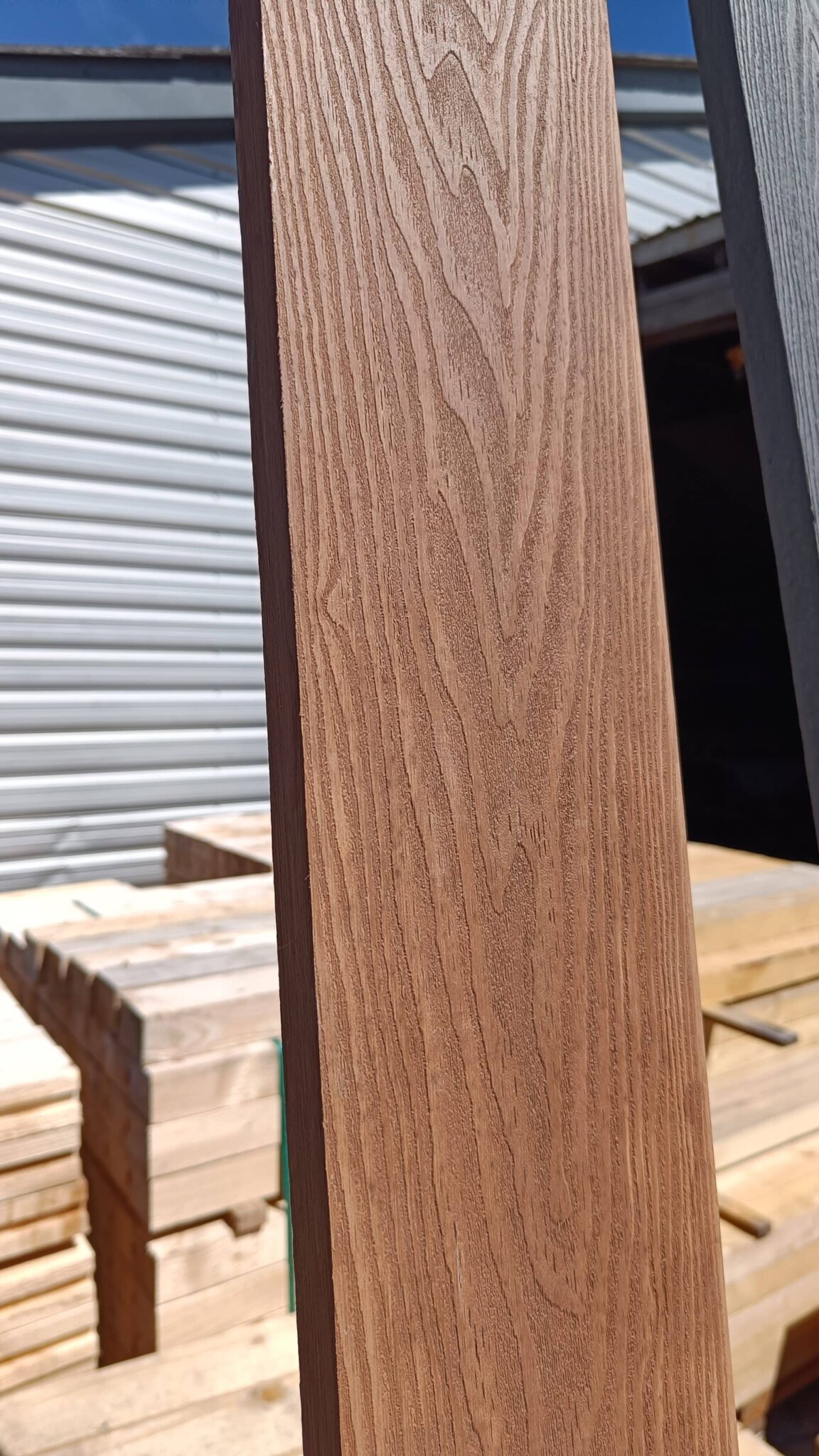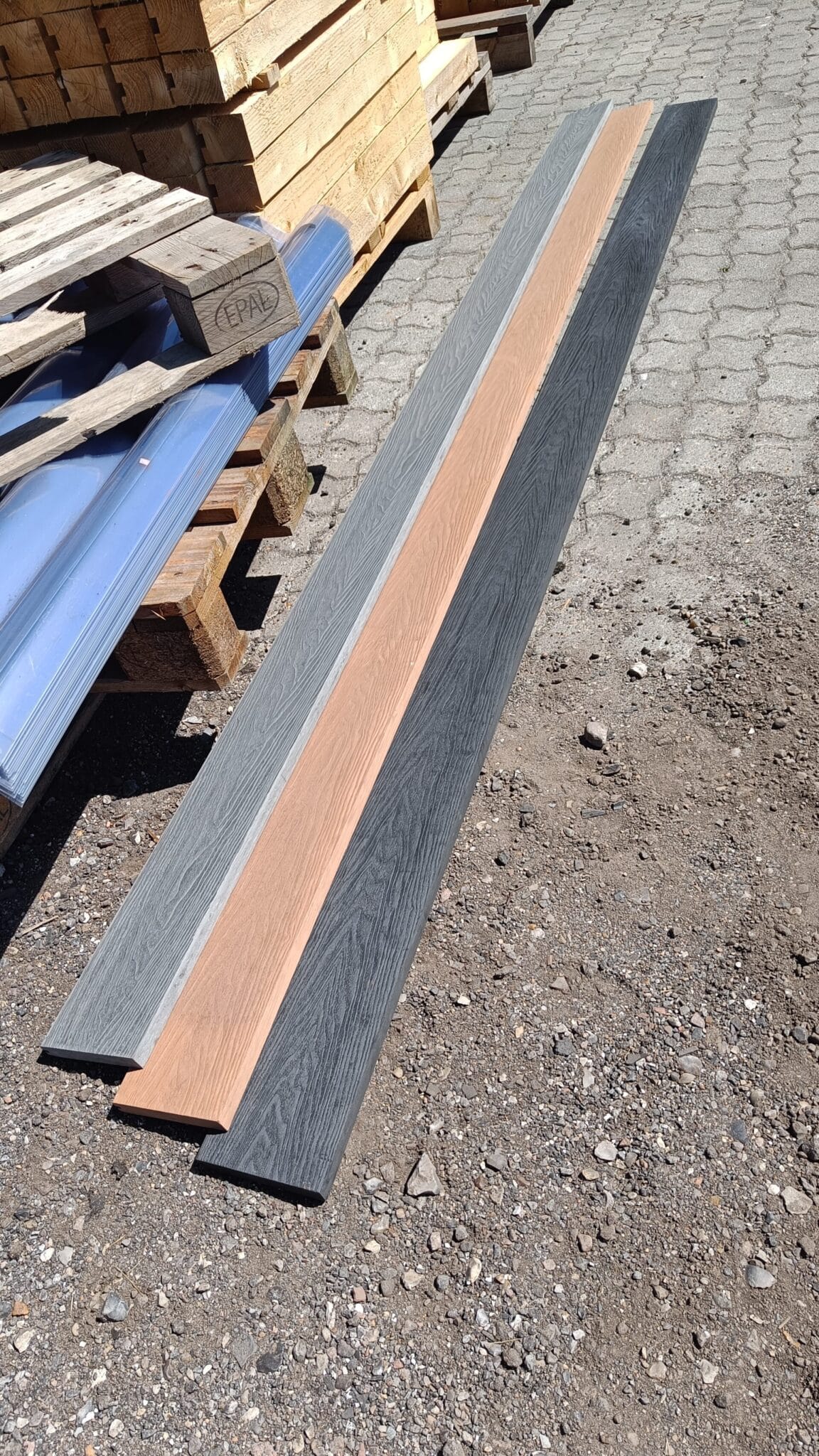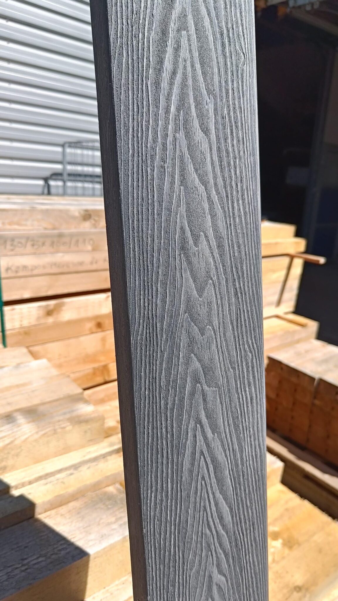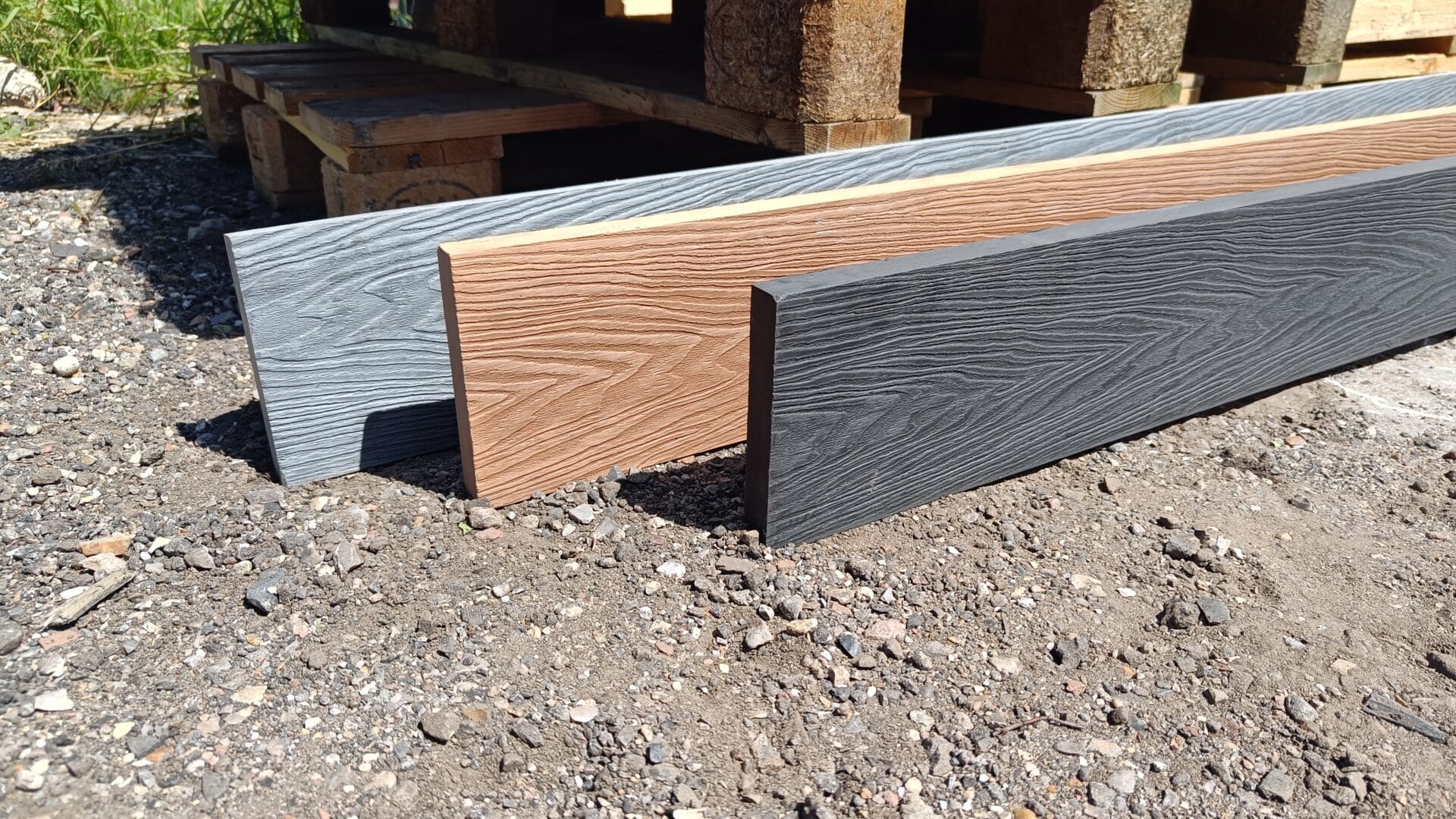Vores komposit består af 60% træ, 30% genanvendt plast og 10% bindemiddel/farve.
