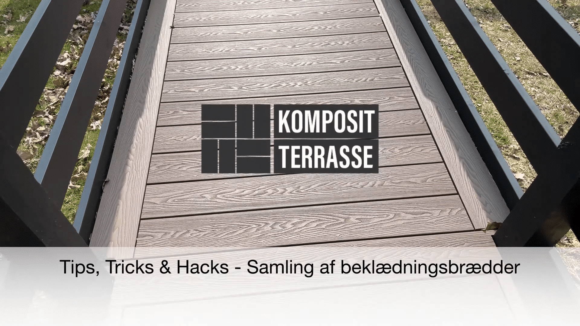 Lægte- eller stolpeafstanden er maks. 400 mm. og der monteres en clips på hver, derved undgår du synlige skruer og kompositten har mulighed for at arbejde i længderetningen.