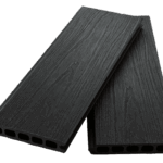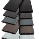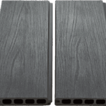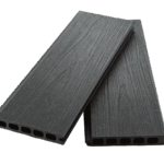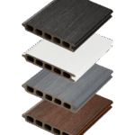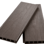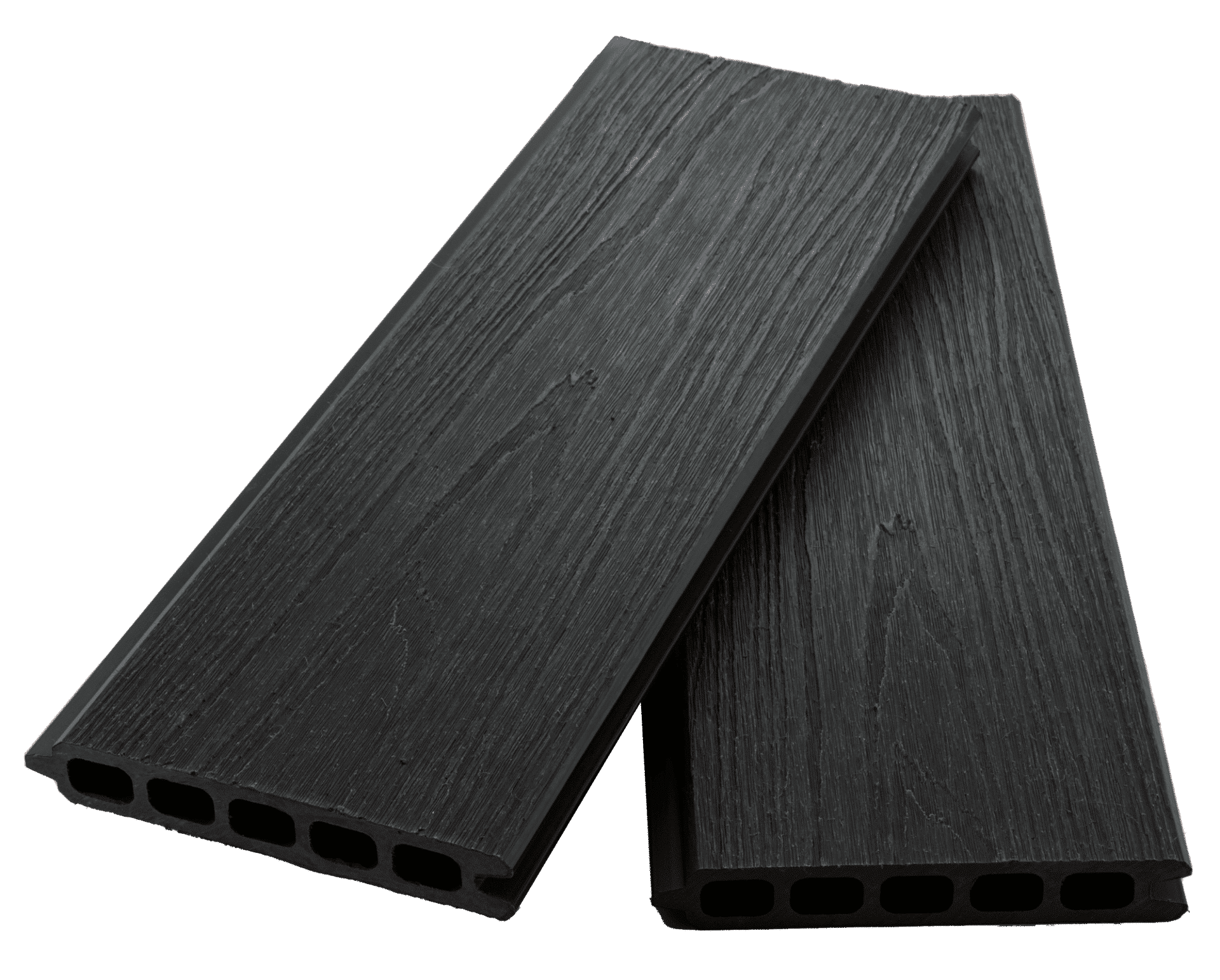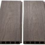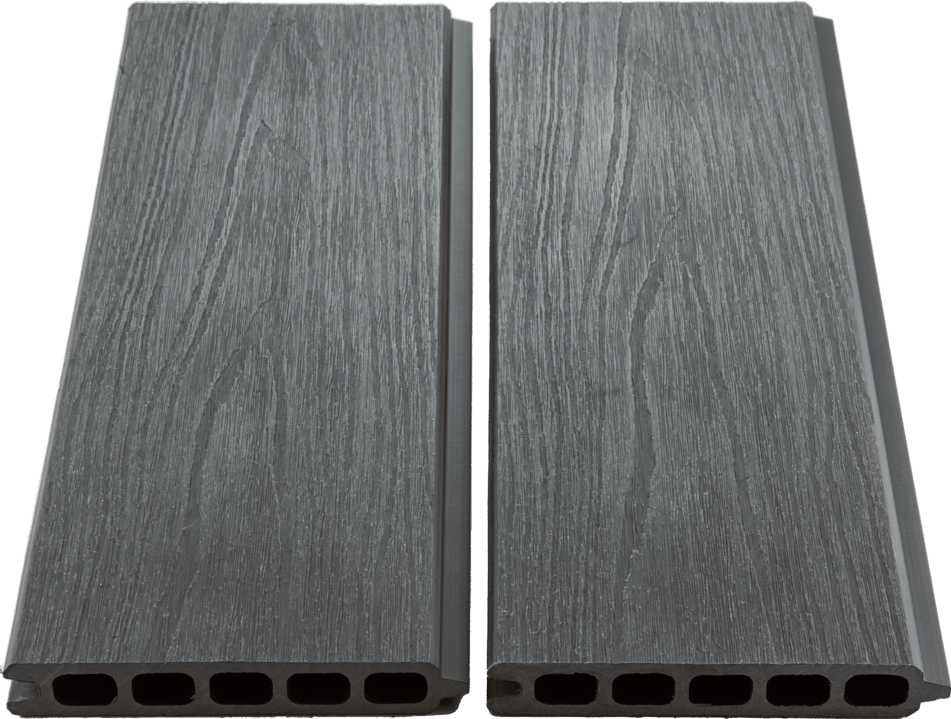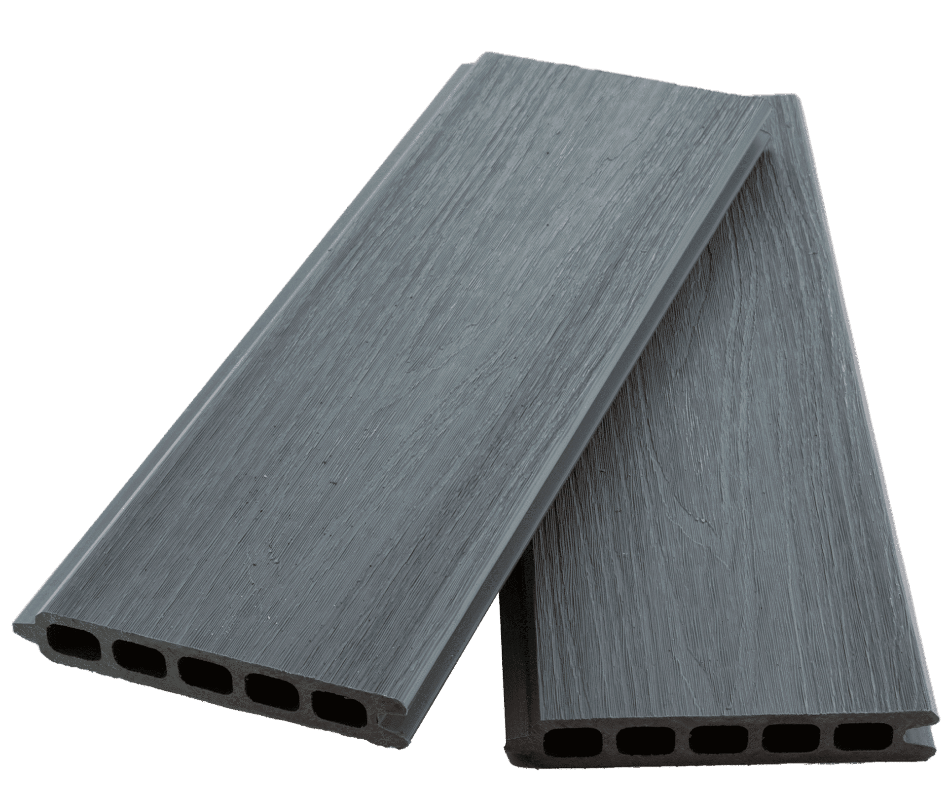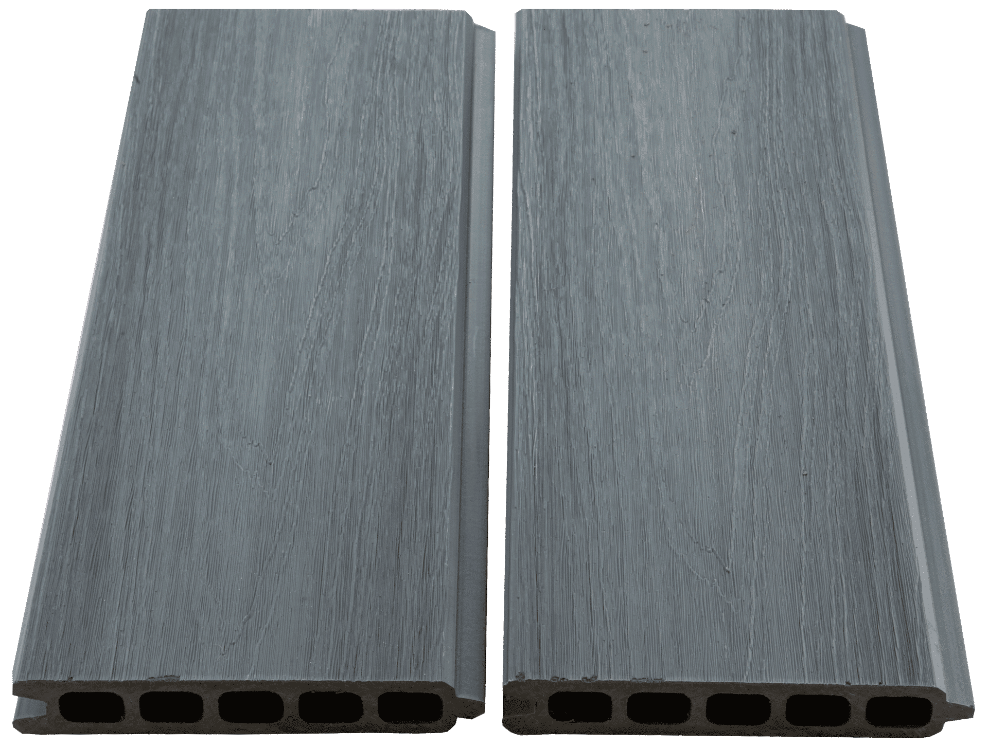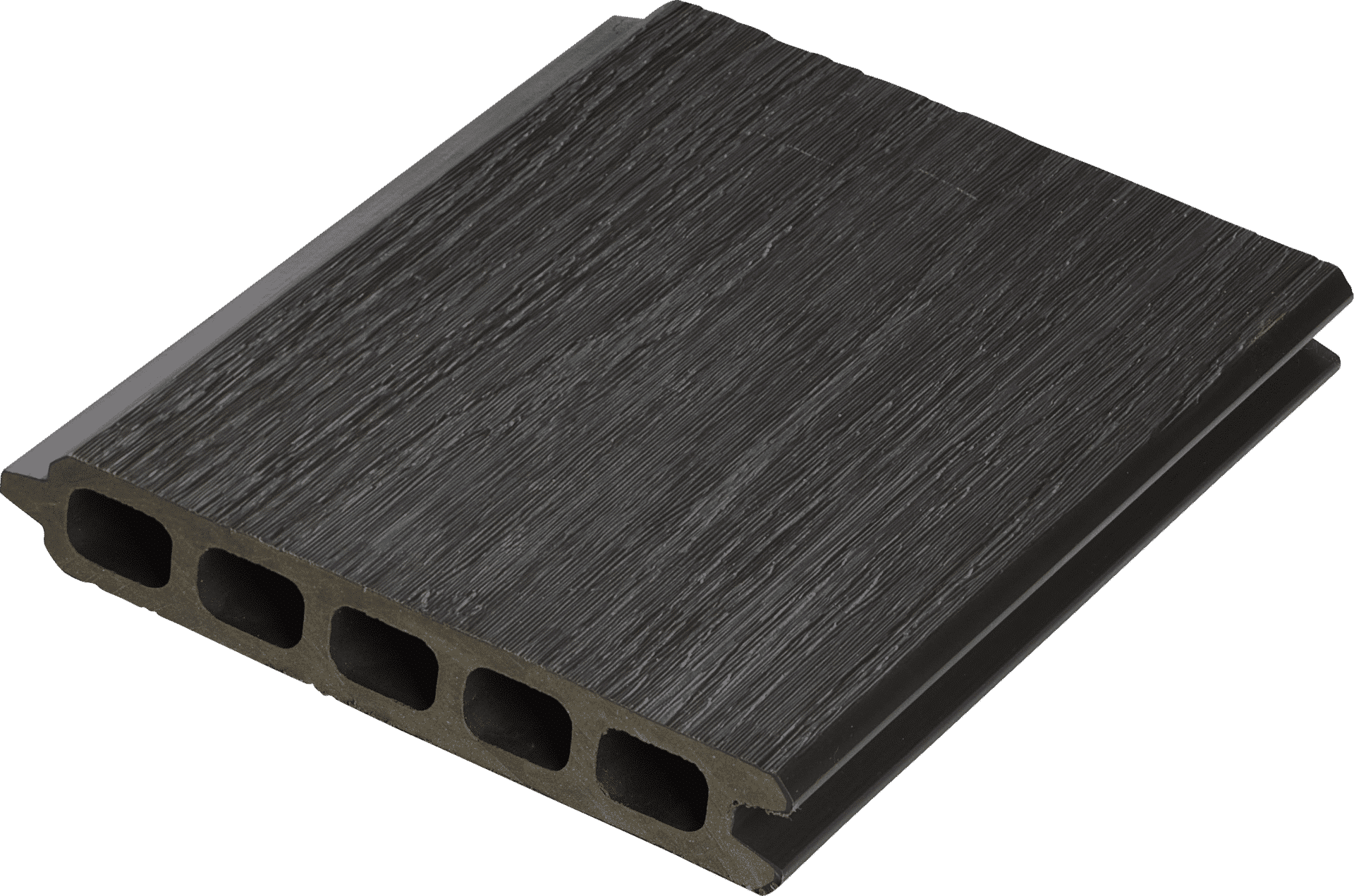 Vores komposit består af 60% træ, 30% genanvendt plast og 10% bindemiddel/farve.