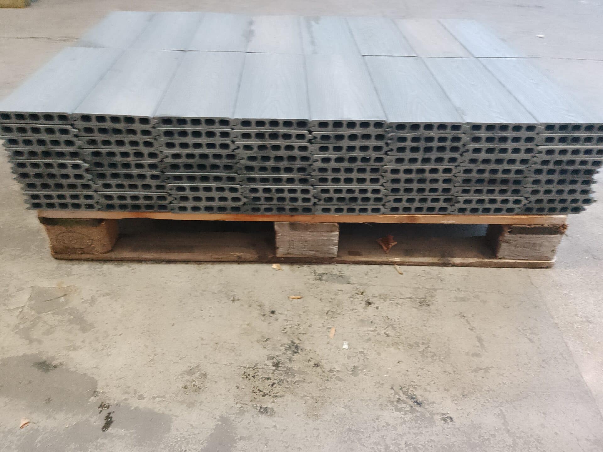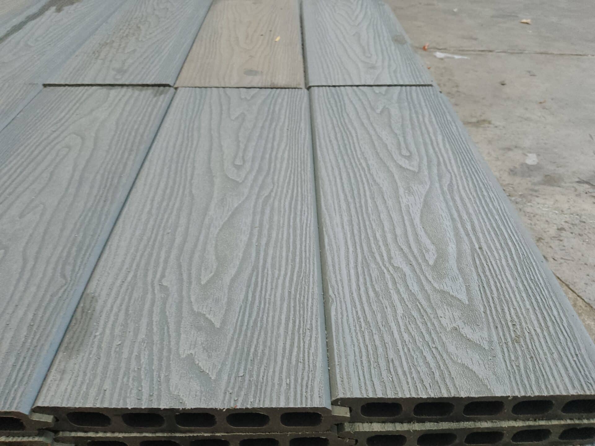 Vores komposit består af 60% træ, 30% genanvendt plast og 10% bindemiddel/farve.