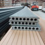 Vores komposit består af 60% træ, 30% genanvendt plast og 10% bindemiddel/farve.