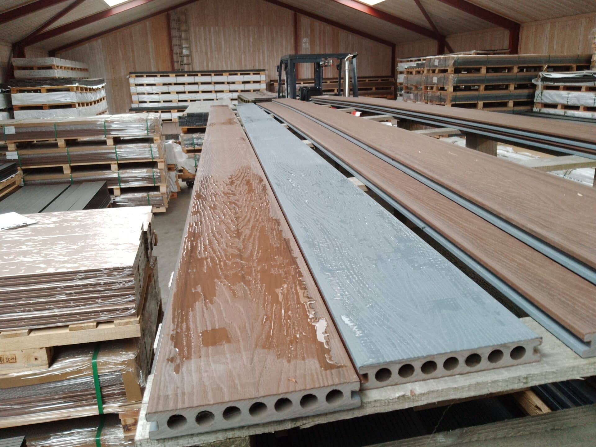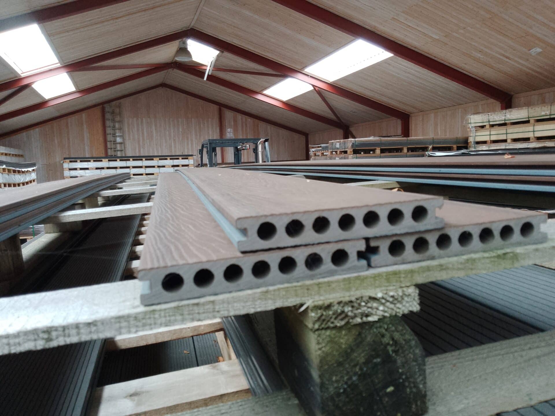 Vores komposit består af 60% træ, 30% genanvendt plast og 10% bindemiddel/farve.