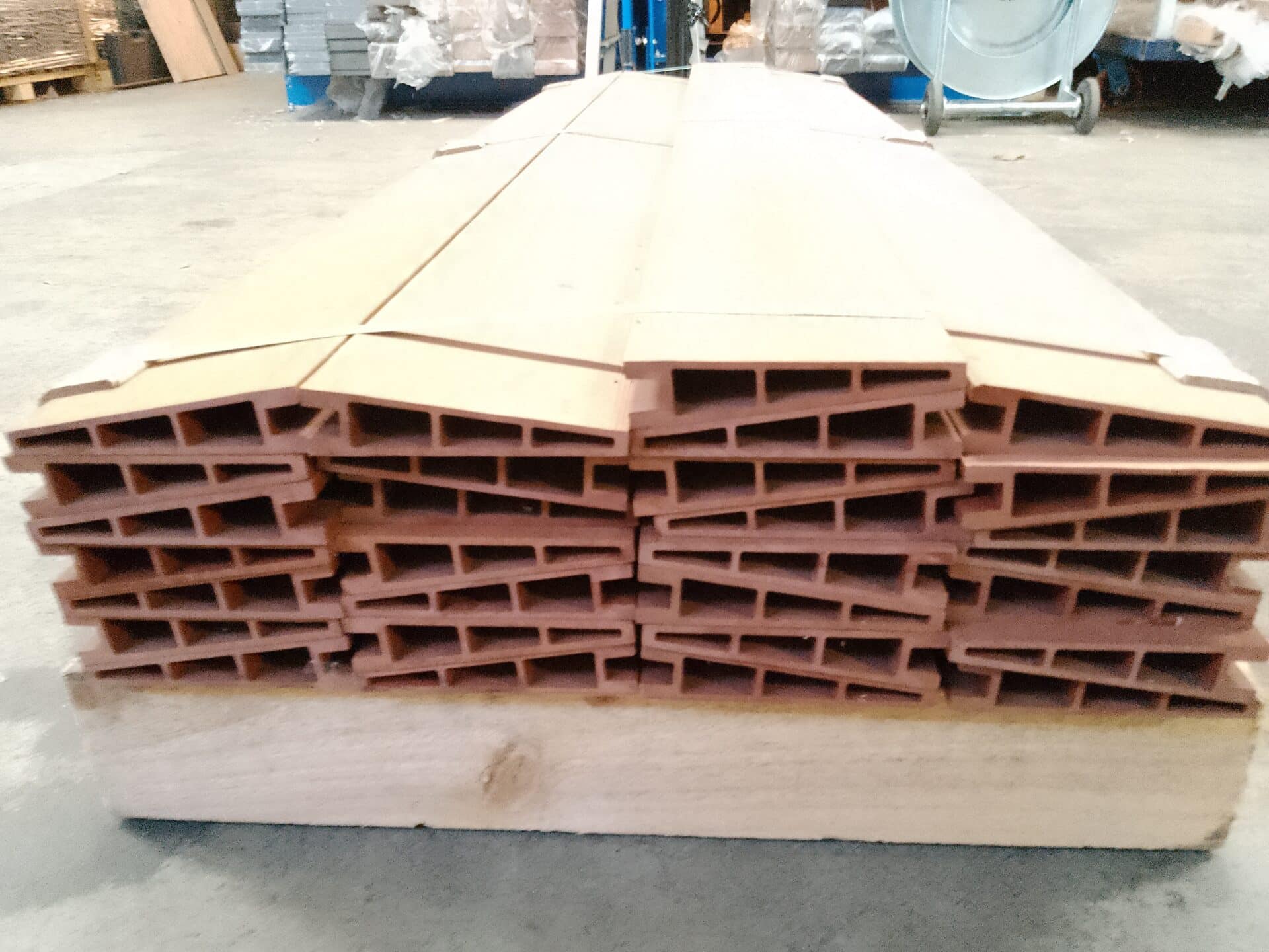 Vores komposit består af 60% naturprodukt, 30% genanvendt plast og 10% bindemiddel/farve.