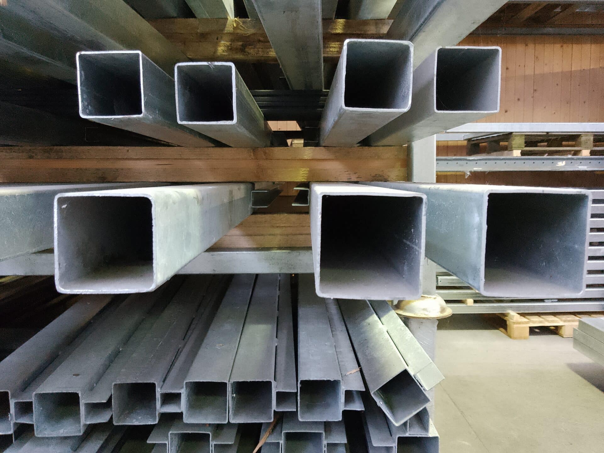 Vores galvaniseret stolpe måler 70x70x2 mm. i 2000/2300/2600/3000 mm. og 70 x 70 x 3 mm. i 3400 mm. U-profiler der skal bruges på siderne måler 30 x 30 x 30 x 2 mm eller 36 x 36 x 36 x 2 mm.