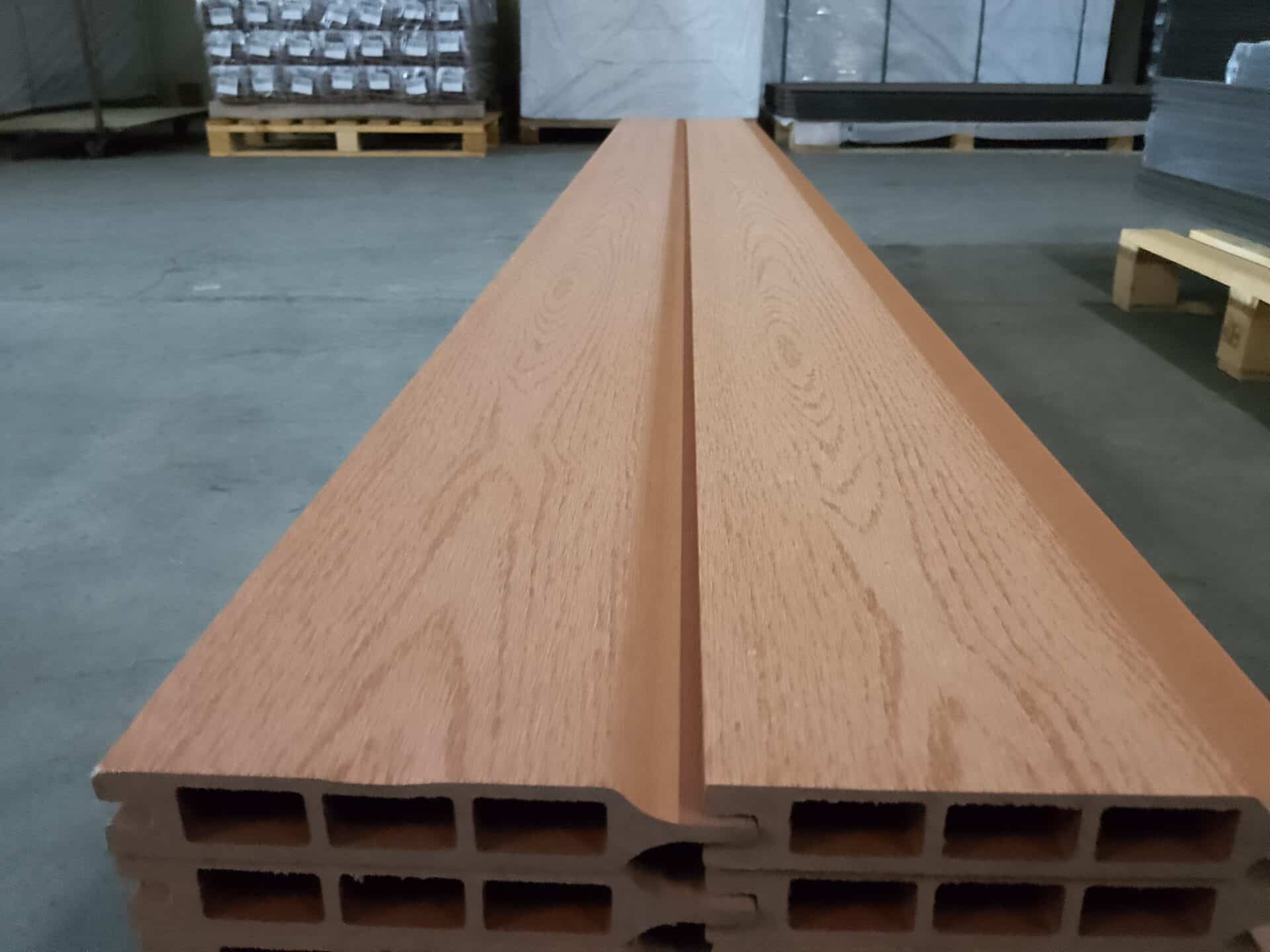 Vores komposit består af 60% træ, 30% genanvendt plast og 10% bindemiddel/farve.