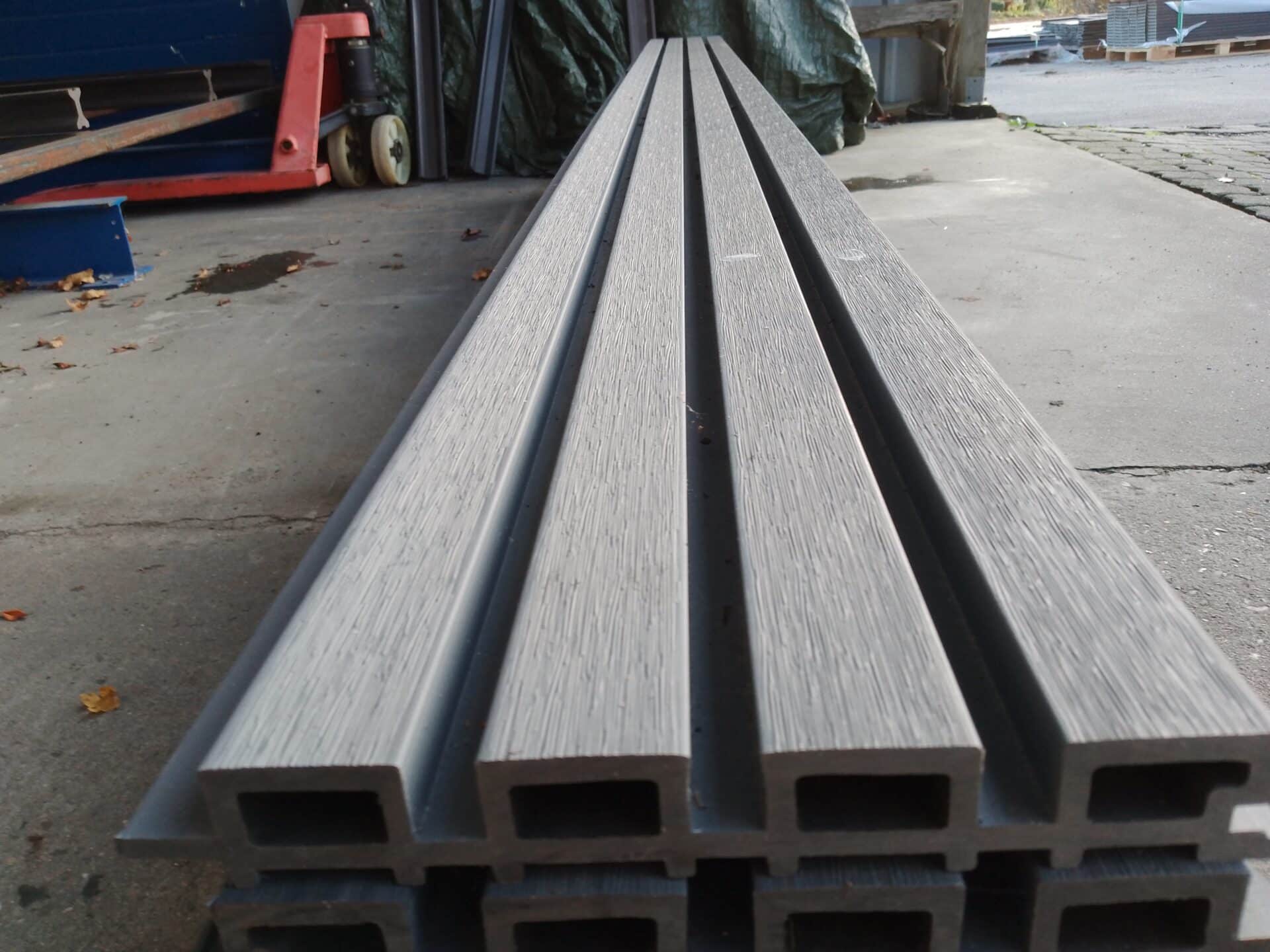 Vores komposit består af 60% træ, 30% genanvendt plast og 10% bindemiddel/farve.