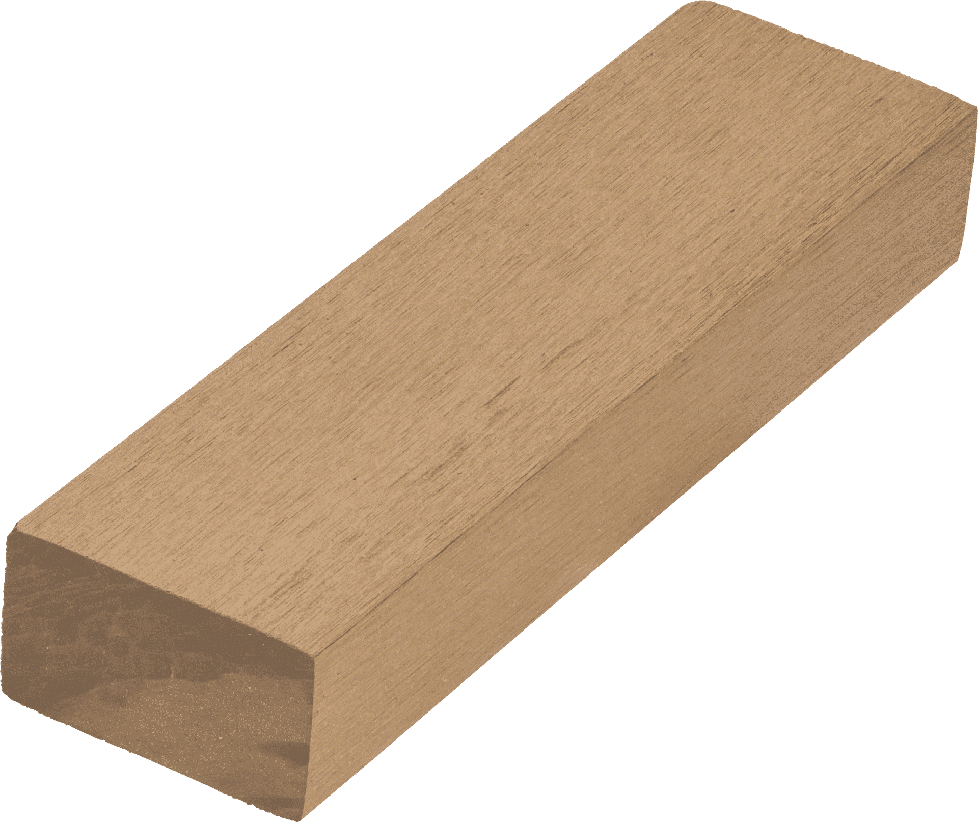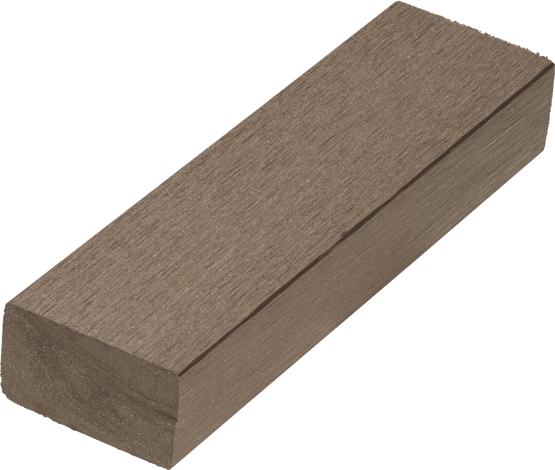 Vores komposit består af 60% træ, 30% genanvendt plast og 10% bindemiddel/farve.