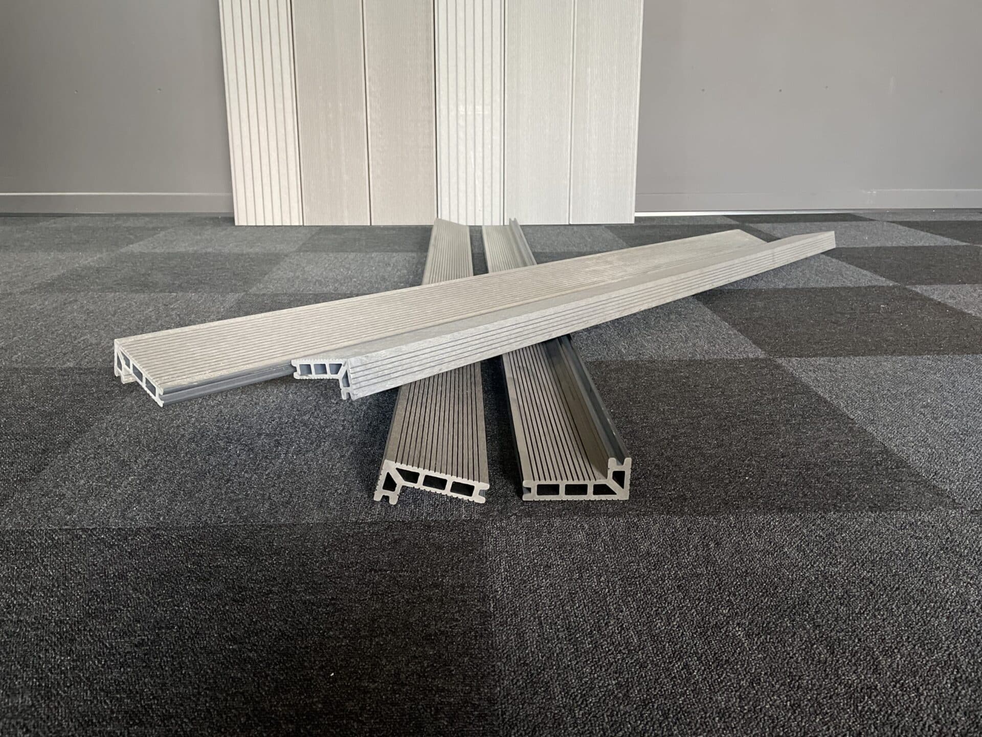 Vores komposit består af 60% træ, 30% genanvendt plast og 10% bindemiddel/farve.